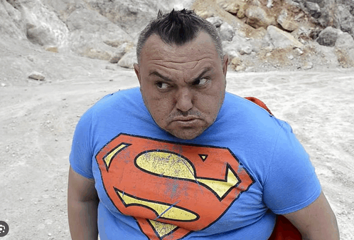 Paglalarawan ng Content: a man with a mohawk wears a blue superman t-shirt