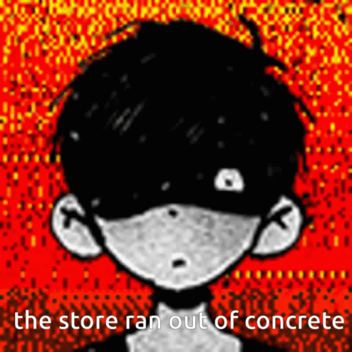Paglalarawan ng Content: a black and white drawing of a boy with the words the store ran out of concrete