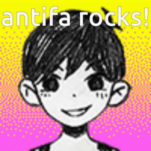Paglalarawan ng Content: a black and white drawing of a boy with the words antifa rocks written on it