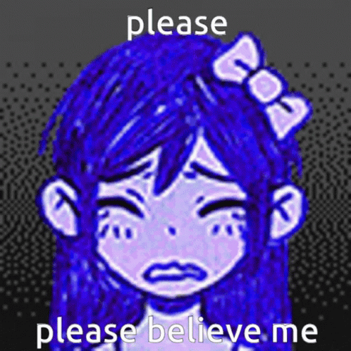 Paglalarawan ng Content: a drawing of a girl with a bow in her hair and the words please please believe me below her