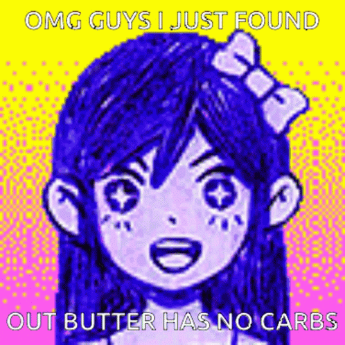 - Paglalarawan ng Content: a drawing of a girl with a bow in her hair and the caption `` omg guys i just found out butter has no carbs ''