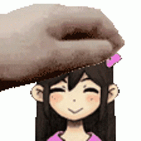 Paglalarawan ng Content: a pixel art of a hand petting a girl 's head .
