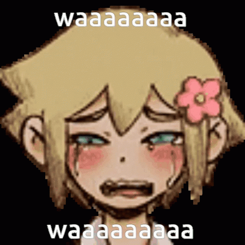 Paglalarawan ng Content: a pixel art of a girl with a flower in her hair and the words waaaaaaa