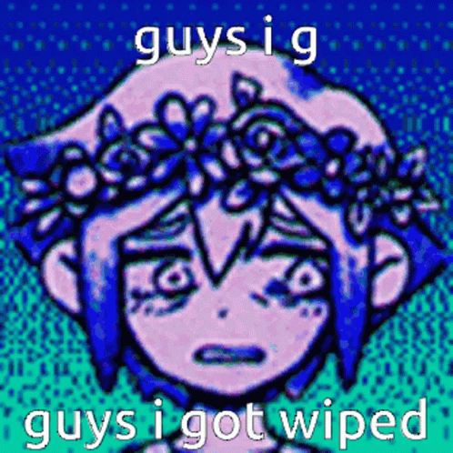 Paglalarawan ng Content: a pixel art of a girl with flowers on her head and the words guys i g guys i got wiped .