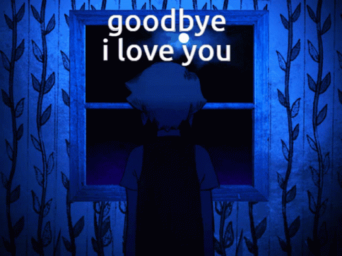 Paglalarawan ng Content: a drawing of a boy looking out a window with the words goodbye i love you above him