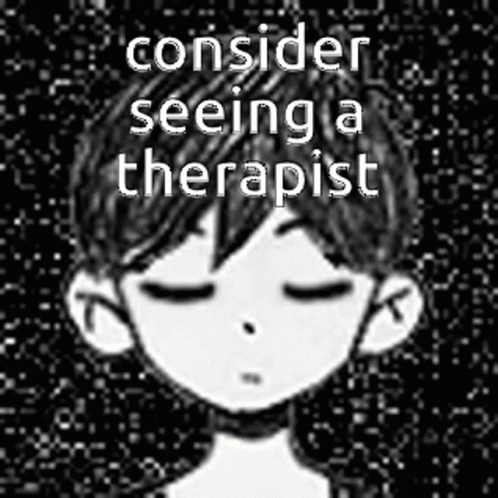 Paglalarawan ng Content: a black and white drawing of a person with the words `` consider seeing a therapist '' written on it .