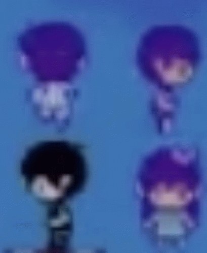 Paglalarawan ng Content: a blurry picture of a group of cartoon characters with purple hair .