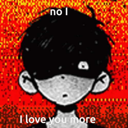Paglalarawan ng Content: a black and white drawing of a boy with a red background and the words `` i love you more '' .