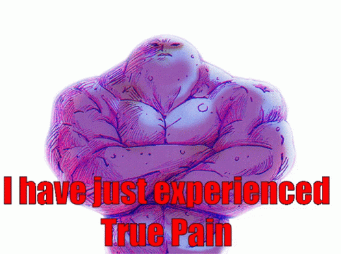 Paglalarawan ng Content: a drawing of a muscle man with the words i have just experienced true pain