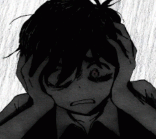 Paglalarawan ng Content: a black and white drawing of a person holding their head with their hands .