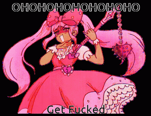Paglalarawan ng Content: a drawing of a girl in a pink dress holding a heart with the words " get fucked " below her