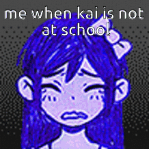 Paglalarawan ng Content: a pixel art of a girl with blue hair and a bow in her hair is crying .