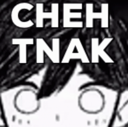 Paglalarawan ng Content: a black and white image of a person 's face with the words cheh tnak written on it .