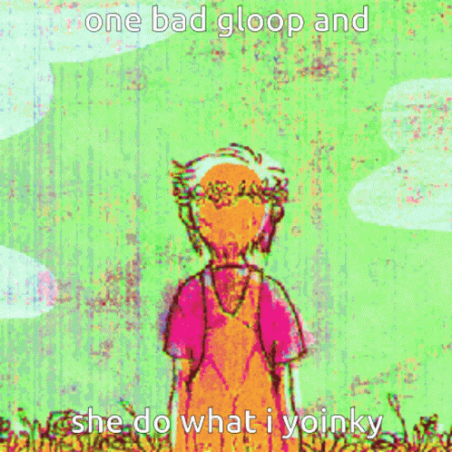Paglalarawan ng Content: a girl with a flower crown on her head is standing in a field with the words one bad gloop and she do what i yoinky