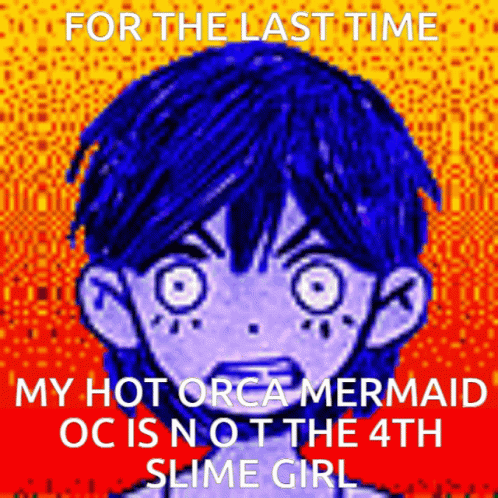 Paglalarawan ng Content: a cartoon of a boy with the words for the last time my hot orca mermaid oc is not the 4th slime girl below it