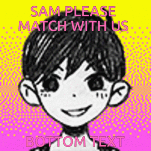 Paglalarawan ng Content: sam please match with us bottom text written on a pink and yellow background