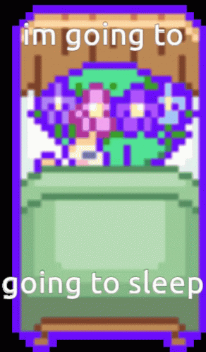 Paglalarawan ng Content: a pixel art of a person laying in a bed with the words i 'm going to going to sleep