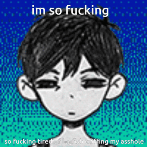 Paglalarawan ng Content: a drawing of a boy with the words im so fucking tired of legfish sniffing my asshole