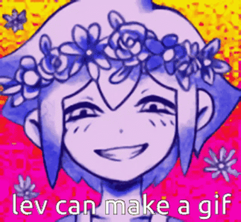 Paglalarawan ng Content: a drawing of a girl with flowers on her head and the words lev can make a gif below her