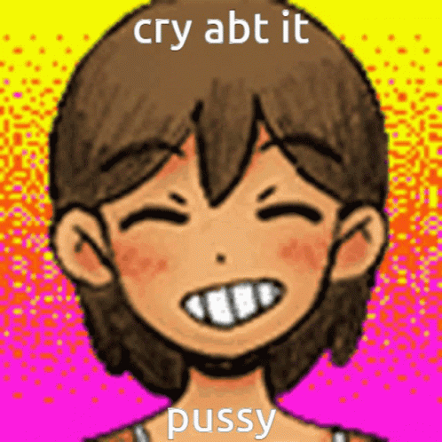 Paglalarawan ng Content: a cartoon of a girl smiling with the words cry abt it pussy written below her