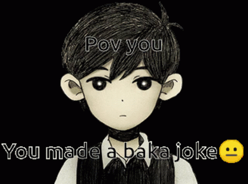 Paglalarawan ng Content: a black and white drawing of a boy with the words " pov you you made a baka joke "