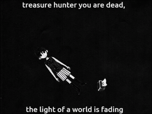 Paglalarawan ng Content: a black and white drawing of a girl with the words " treasure hunter you are dead "