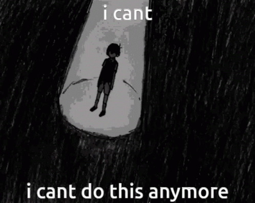 Paglalarawan ng Content: a black and white drawing of a boy with his head in his hands and the words `` i cant do this anymore '' .