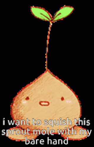 Paglalarawan ng Content: a picture of a sprout mole with the words i want to squish this sprout mole with my bare hand below it