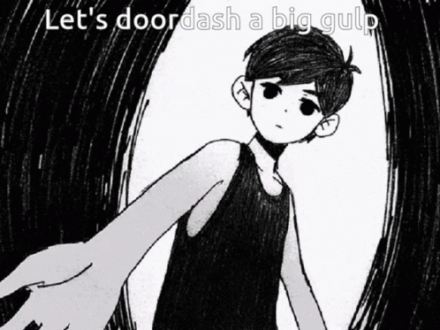 Paglalarawan ng Content: a black and white drawing of a person with the words let 's doordash a big gulp