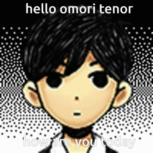 Paglalarawan ng Content: a picture of a boy with the words hello omori tenor how are you today on it