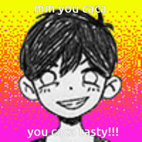 - Paglalarawan ng Content: a black and white drawing of a boy with a colorful background and the words `` mm you caca you caca tasty !! ''