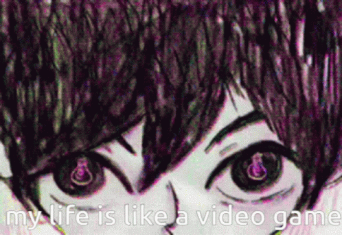 Paglalarawan ng Content: a close up of a person 's eyes with the words my life is like a video game