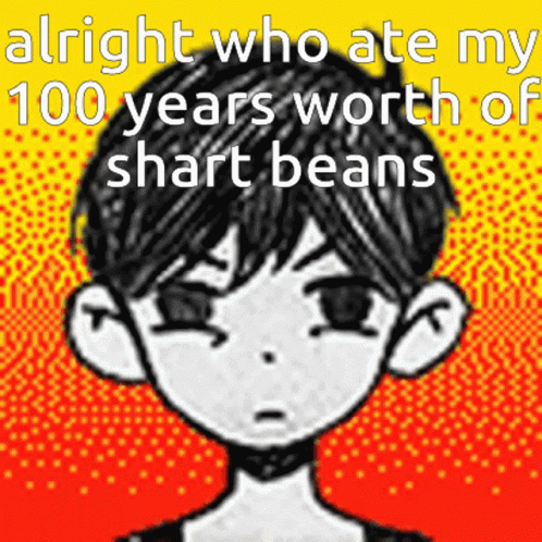 Paglalarawan ng Content: a picture of a boy with the words alright who ate my 100 years worth of sharp beans
