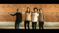 Paglalarawan ng Content: a group of four men are standing next to each other in front of a brick wall .