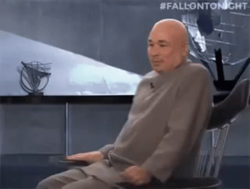 Paglalarawan ng Content: a bald man is sitting in a chair with his hands on his hips .
