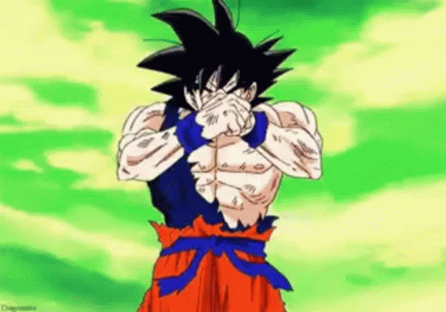 Paglalarawan ng Content: goku from dragon ball z is covering his face with his hands in a cartoon .