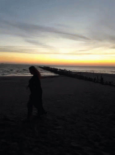 Paglalarawan ng Content: a person walking on a beach at sunset