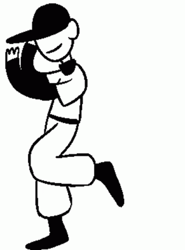 Paglalarawan ng Content: a black and white drawing of a man in a baseball uniform running .