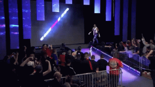 Paglalarawan ng Content: a man in a wrestling ring stands in front of a sign that says " lo or more "