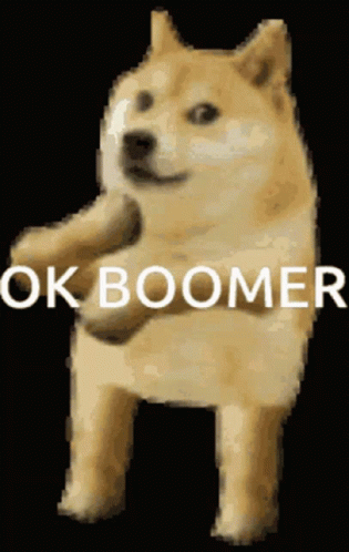 Paglalarawan ng Content: a doge says ok boomer while holding a banana