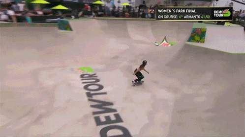 Paglalarawan ng Content: a person riding a skateboard on a ramp with a sign that says women 's park final on it