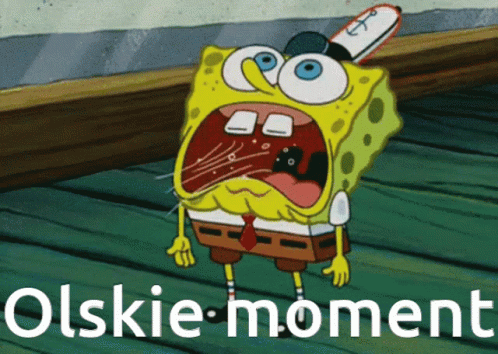 Paglalarawan ng Content: a cartoon of spongebob with his mouth open and the words olskie moment below him