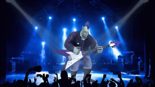 Paglalarawan ng Content: a man with a mohawk playing a guitar on stage