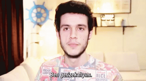 Paglalarawan ng Content: a man with a beard is wearing a colorful shirt that says ben gerzekallym