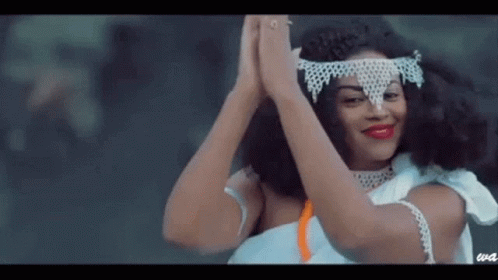 Paglalarawan ng Content: a woman wearing a white dress and a white headband is dancing .