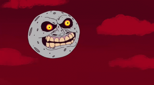 Paglalarawan ng Content: a cartoon drawing of a moon with a big mouth and yellow eyes