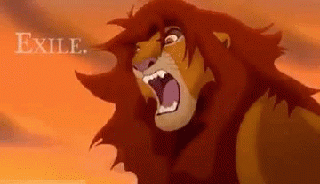 Paglalarawan ng Content: a lion from the lion king is screaming with its mouth open and the words exile written on the bottom