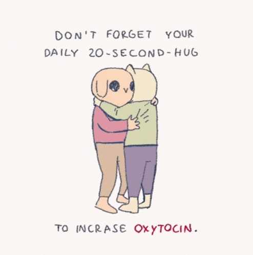 - Paglalarawan ng Content: a cartoon of two people hugging with the words do n't forget your daily 20 second hug to increase oxytocin below them