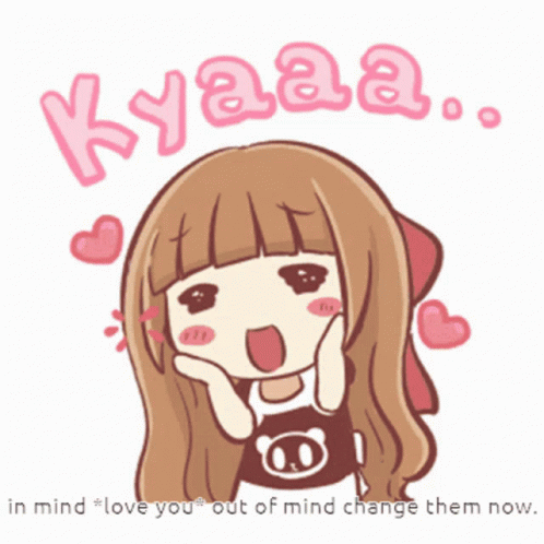 Paglalarawan ng Content: a cartoon girl says kyaaa in pink letters