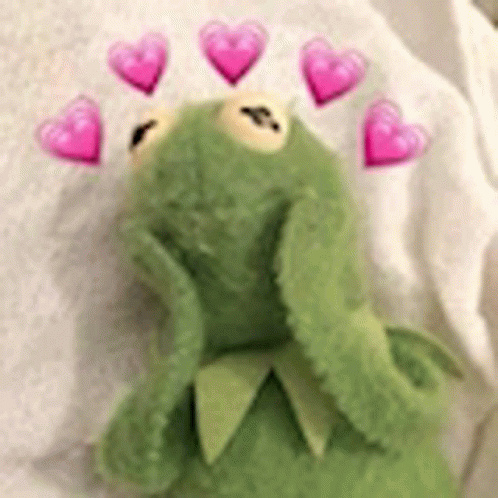Paglalarawan ng Content: a green kermit the frog stuffed animal with pink hearts around it .